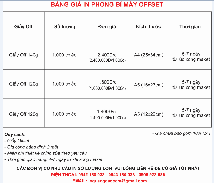 Báo Giá In Phong Bì